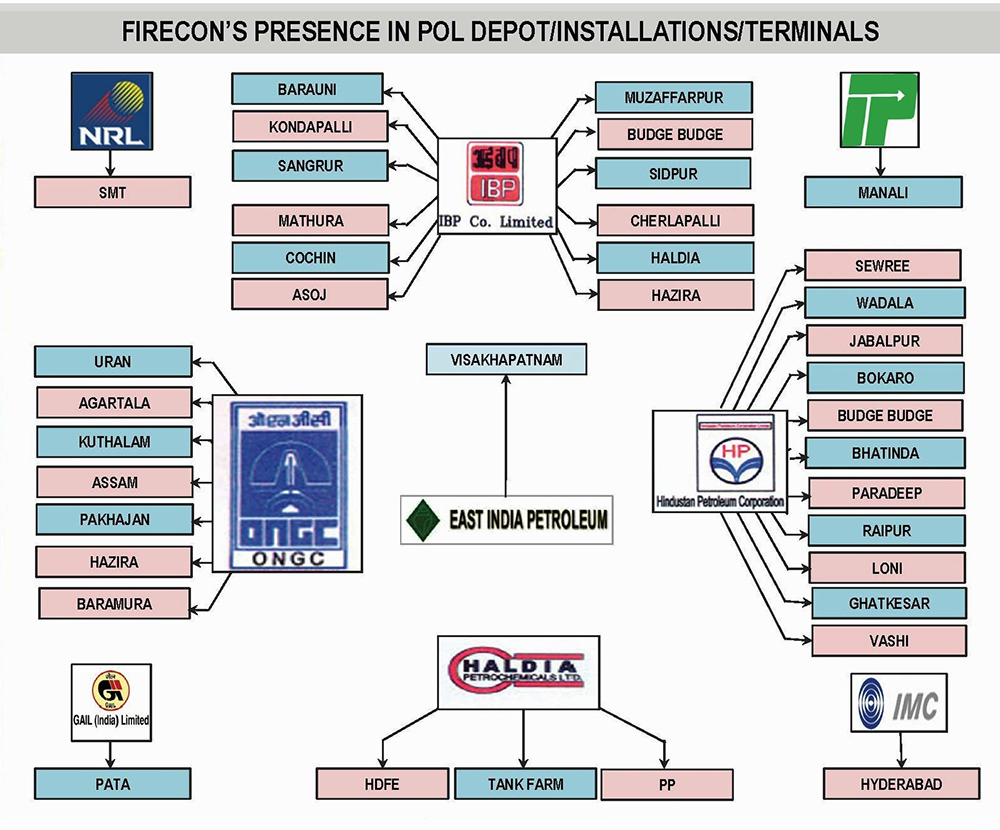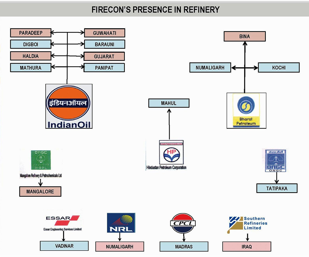 FIRECON’ received recognition from ‘INDIAN OIL CORPORATION LTD’ in the year 1987 when it was entrusted with the job of automation of Fire Hydrant system for their depots/terminals and installation at MALDA, RAXAUL, MISSAMARI, CUTTACK, DIMAPUR, BUDGE BUDGE, RAJBANDH, SILIGURI, PATNA, HALIDA & PORTBLAIR.