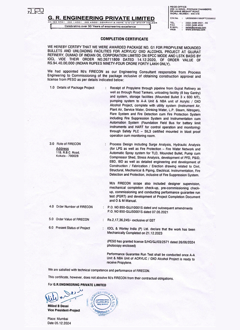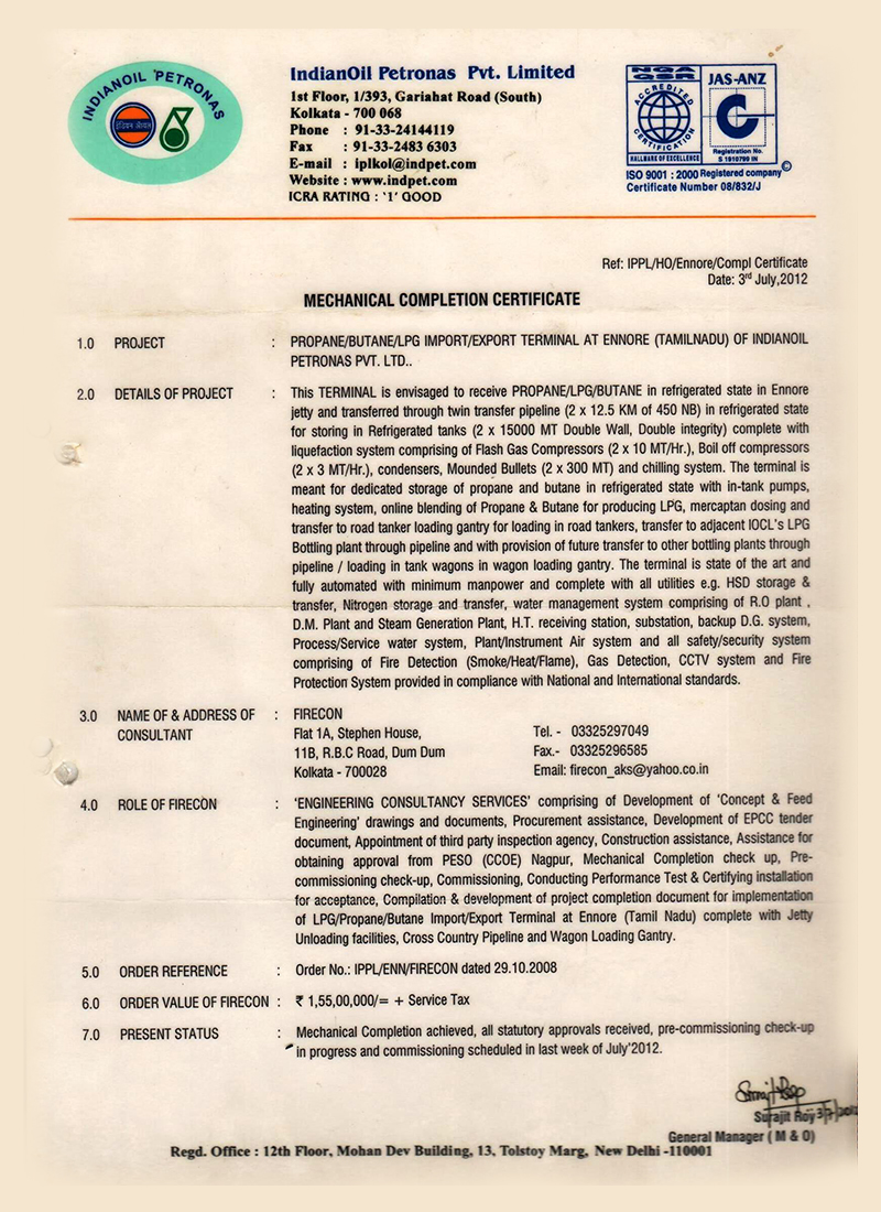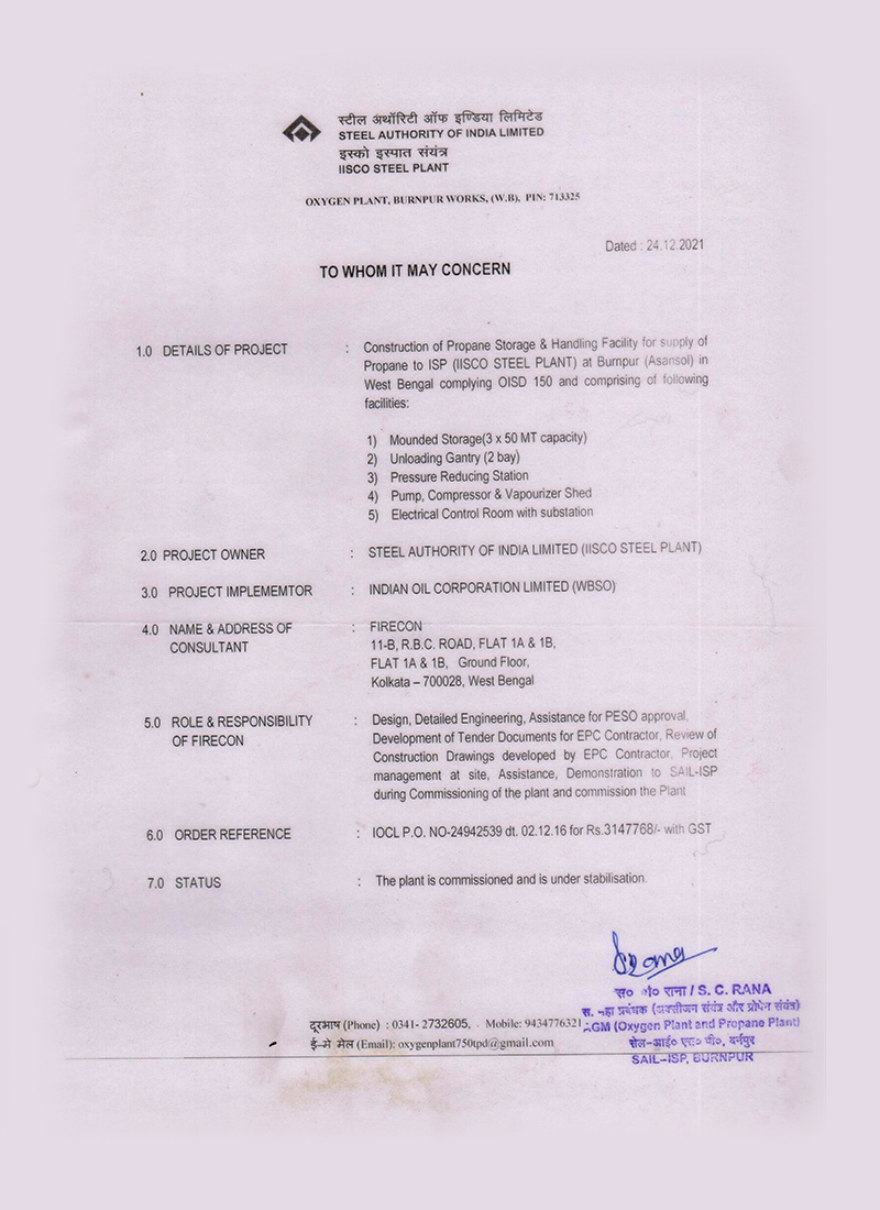 IOCL - CONSTRUCTION OF PROPANE STORAGE & HANDLING FACILITY AT IISCO BURNPUR (ASANSOL), WEST BENGAL