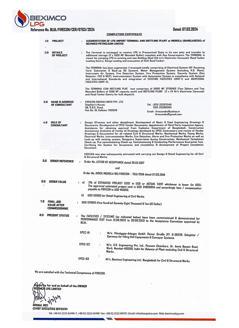 BEXIMCO:LPG TERMINAL/BOTTLING PLANT MONGLA,BANGLADESH.