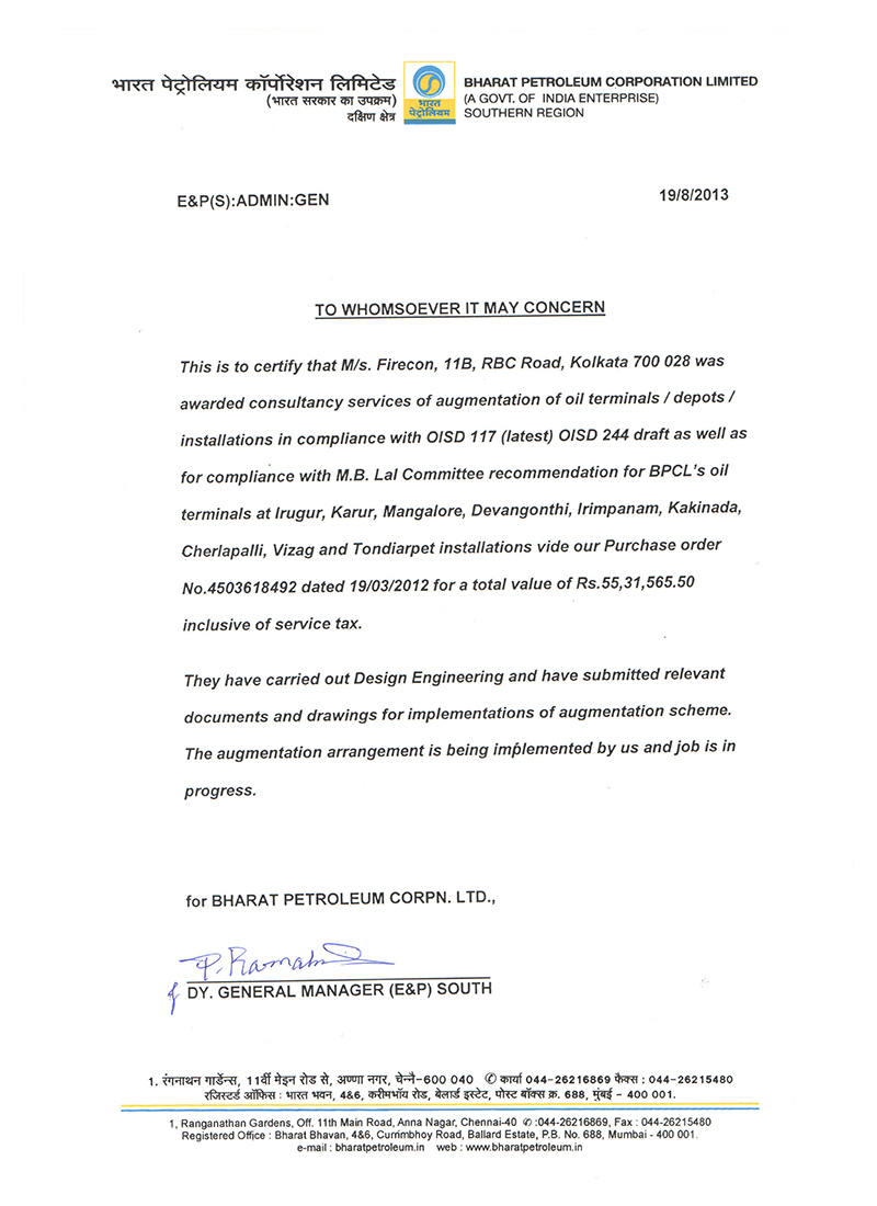 BPCL:AUGMENTATION FOR M.B. LAL COMPLIANCE AT SOUTHERN ZONE