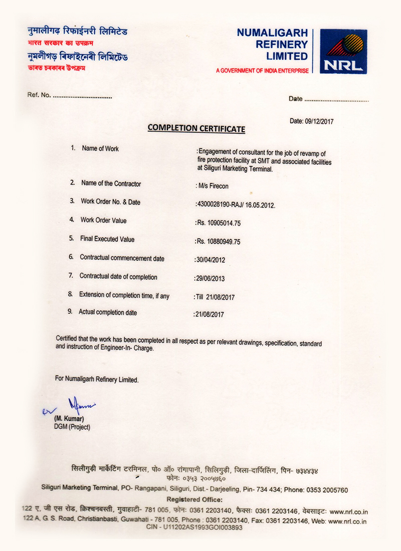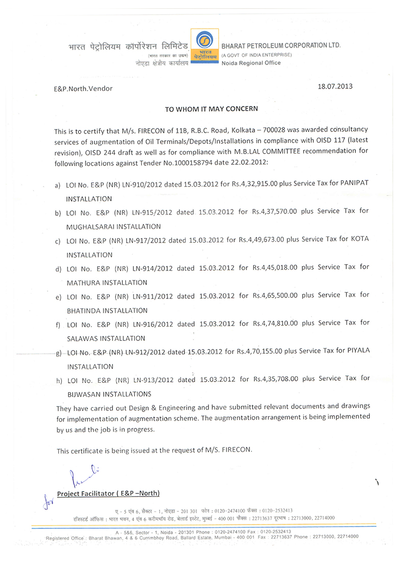 BPCL:AUGMENTATION FOR M.B. LAL COMPLIANCE AT NORTHERN ZONE