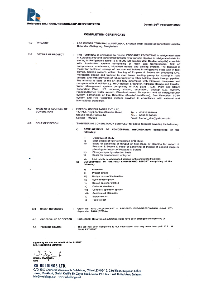 R.R. GLOBAL :REFRIGERATED IMPORT TERMINAL, KUTUBDIA, BANGLADESH.