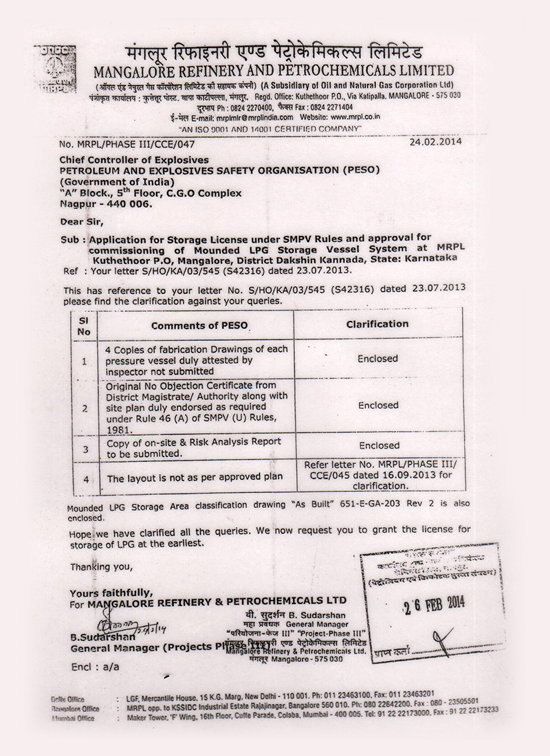 MRPL : MOUNDED BULLET FACILITY, AT MANGALORE, KARNATAKA.
