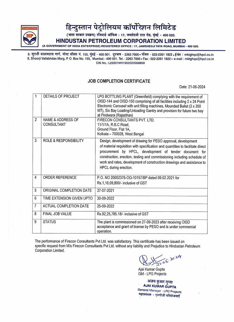 HPCL - LPG BOTTLING PLANT (GREENFIELD) AT PINDWARA, RAJASTHAN